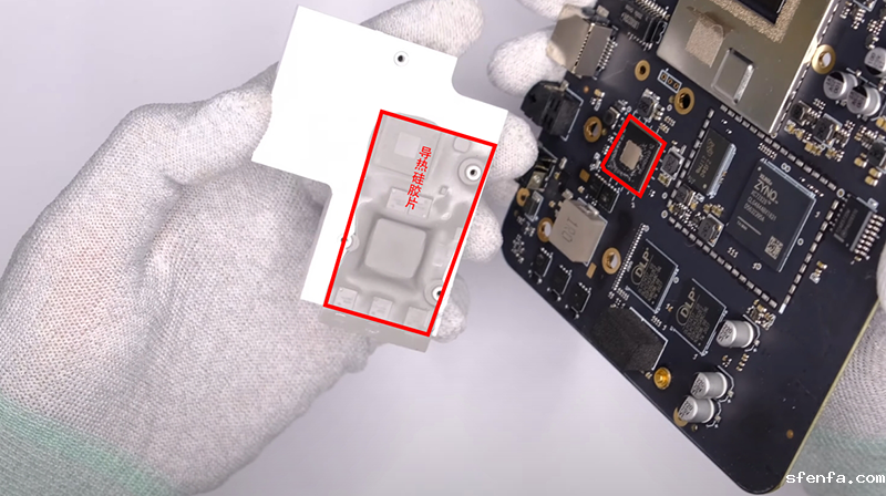 主控芯片散热片,通过导热硅胶片将热量传递到散热片。